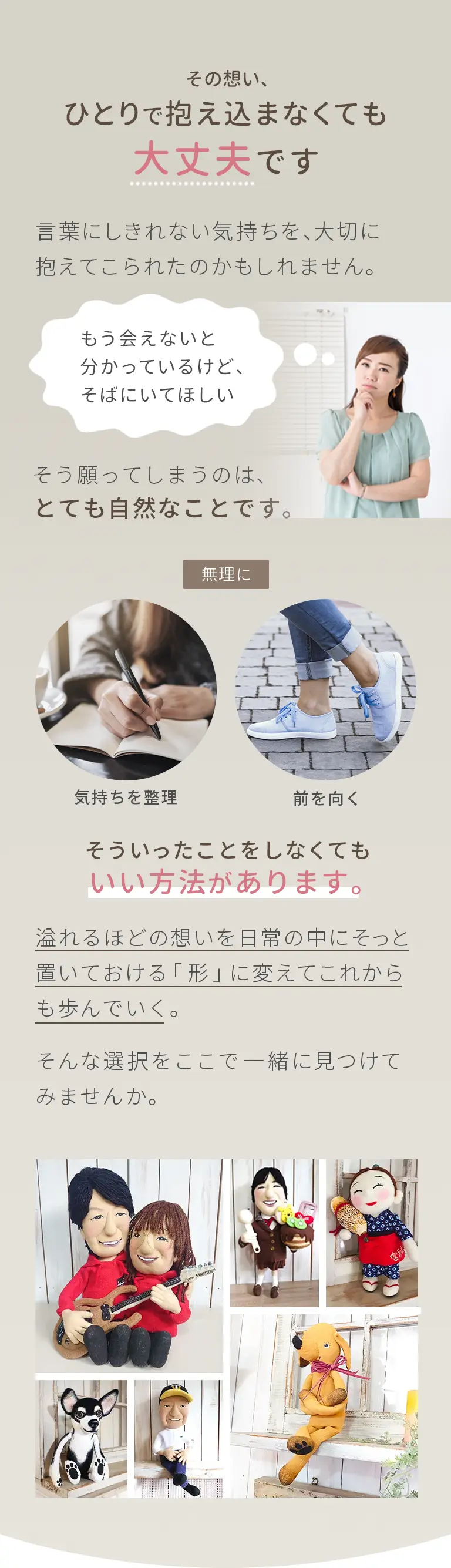 全体の雰囲気や印象が分かる お写真を2〜3枚程度 ご用意ください。