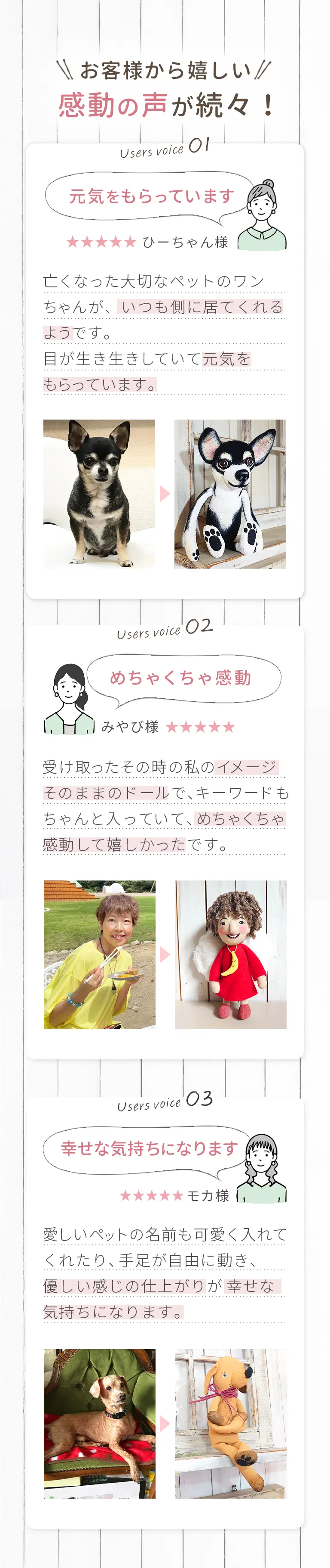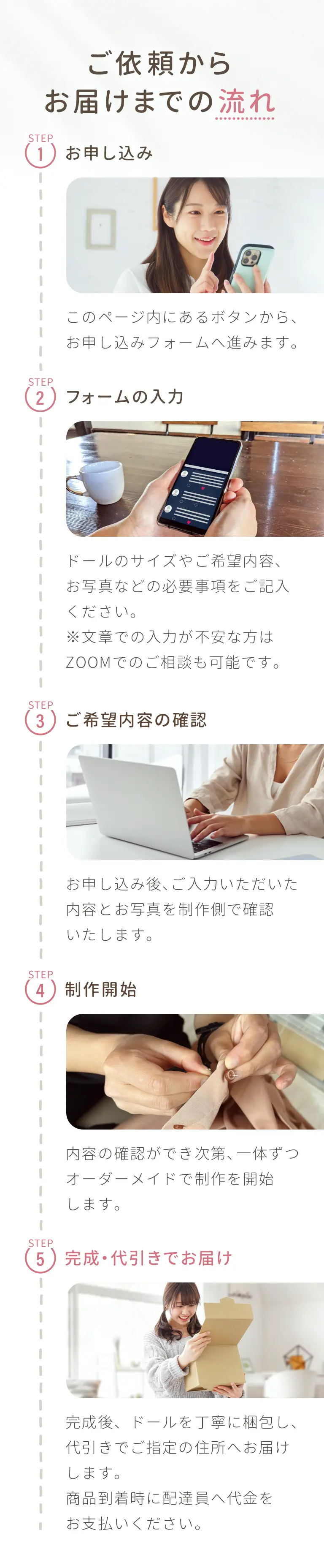 完成したドールをお受け取りいただいた後、